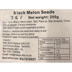 Ingredients: Black Melon Seed, Salt, Palm Oil, Star Aniseed, Clove, Sichuan Pepper, Flavour Enhancer (E621, E635/ Hydrolyzed Vegetable Protien)