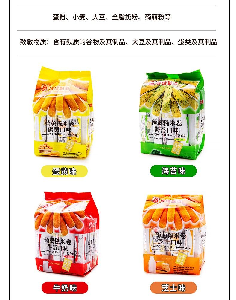 Ingredients: Brown Rice (25%), Palm Oil, Maltodextrin, Rice, Cron, Sugar, Seaweed Powder (7%), Soy Sauce Powder (Soybeans, Wheat, Salt, Sugar), Konjac Powder (0.7%).