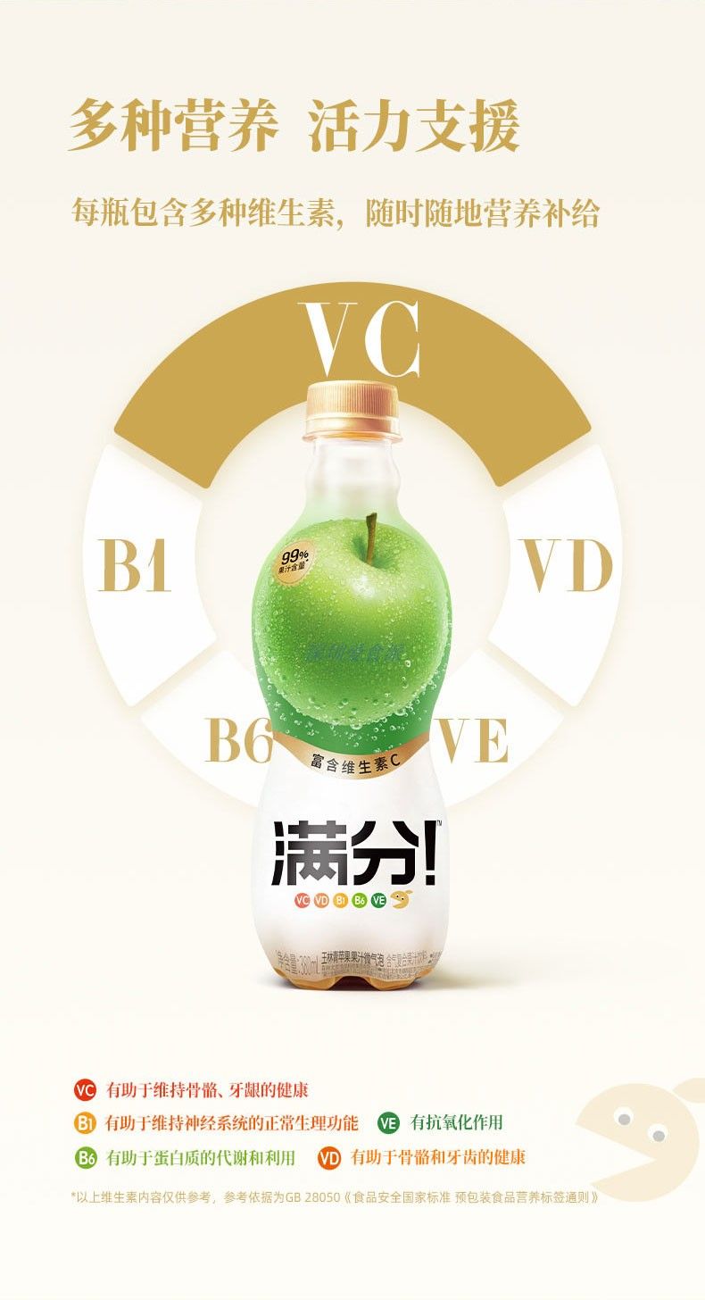 元气森林满分 微气泡果汁 青苹果味 380ml
