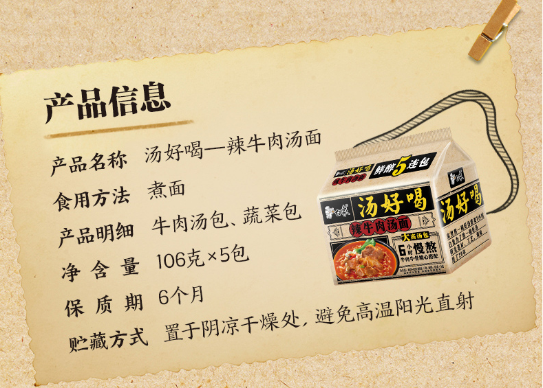 白象 辣牛肉汤方便面 111g
