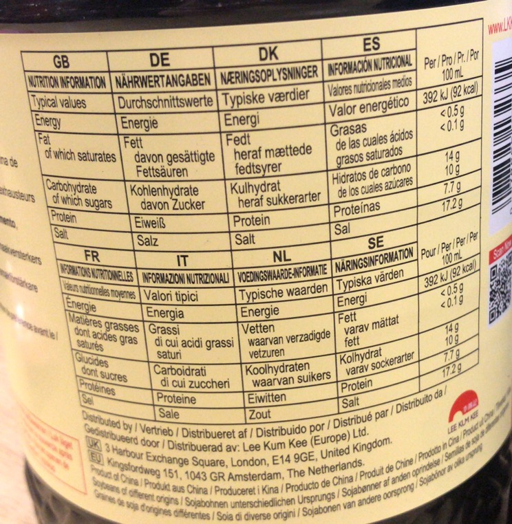 Ingredients: Water, Salt, Soybeans 11%, Sugar, Wheat Flour, Flavour Enhencers (Disodium Inosinate, Disodium Guanylate).