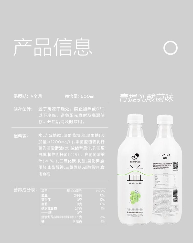 喜茶 海盐荔枝味 无糖气泡水 500ml
