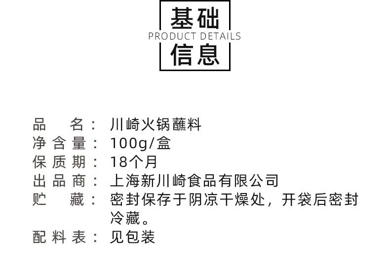 Ingredients: Peanut Sauce (Peanut/Sesame), Beancurd (Water/Non - Transgenic Soybeans/Alcohol Spirit/Salt/Chili), Sweet Flour Sauce (Wheat Flour/Water/Salt/Preservatives: E202), Sweet Flour Sauce (Wheat Flour/ Water/Salt/Preservative: 202), Sweer Flour Sauce (Wheat Flour/Water/Salt/Perservatives: E202), Bean, Wheat Flour, Palm Oil, Salt, Preservative: E211, E202), Palm Oil, Cooking Wine, Sugar, Garlic, Chives, Dried Shrimp Flake, Corn Flour, Dried Mushrooms, Salt, Flavour Enhancer (E621/E635/Hydrolyzed Vegetable Protein), Soy Sauce (Soy Beans/Water), Spices, Preservative(E202), Acidity Regulator (E330), Sweetener (E951)