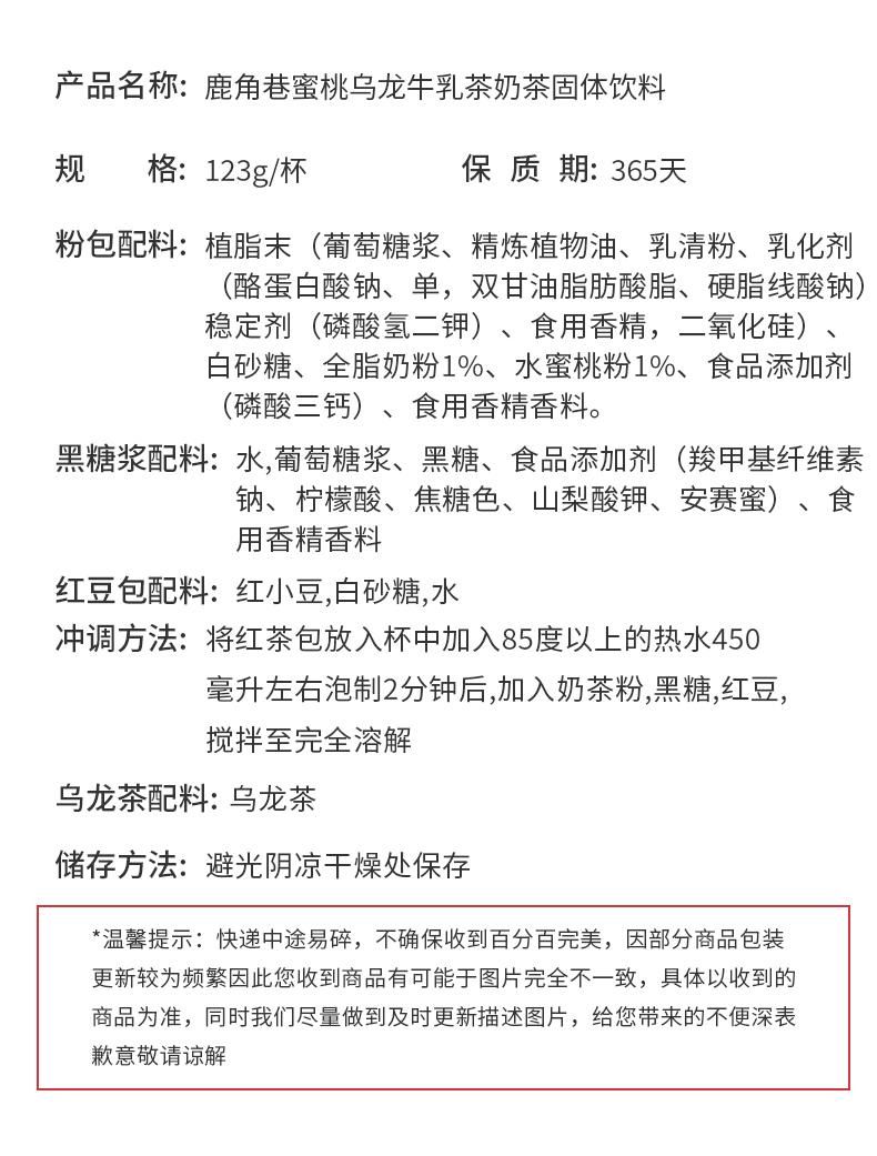鹿角巷奶茶 蜜桃乌龙牛乳茶 123g