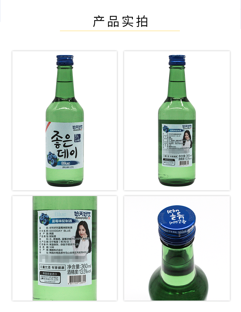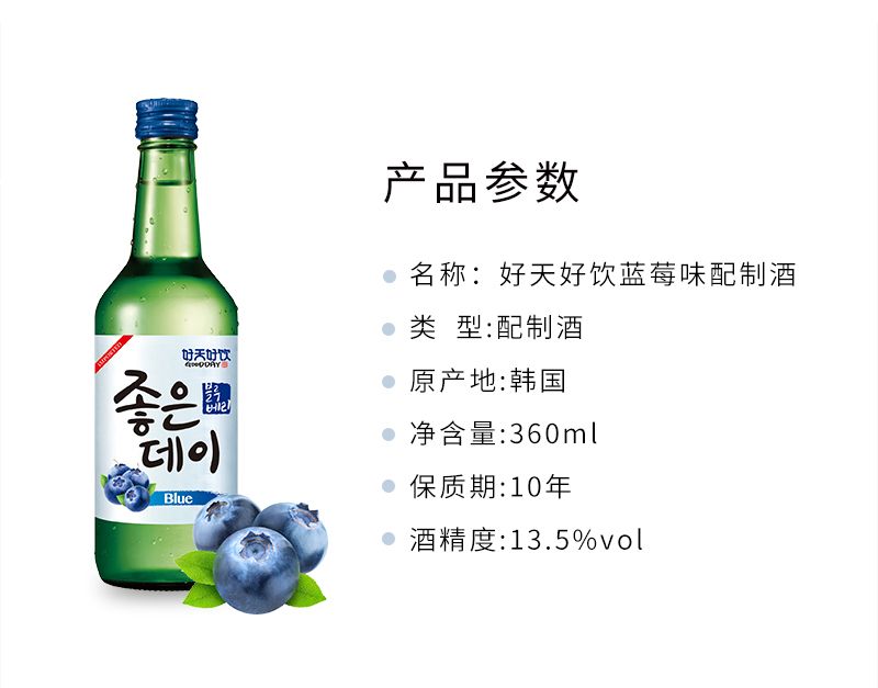 好天好饮 韩国烧酒 蓝莓味 13.5% 360ml
