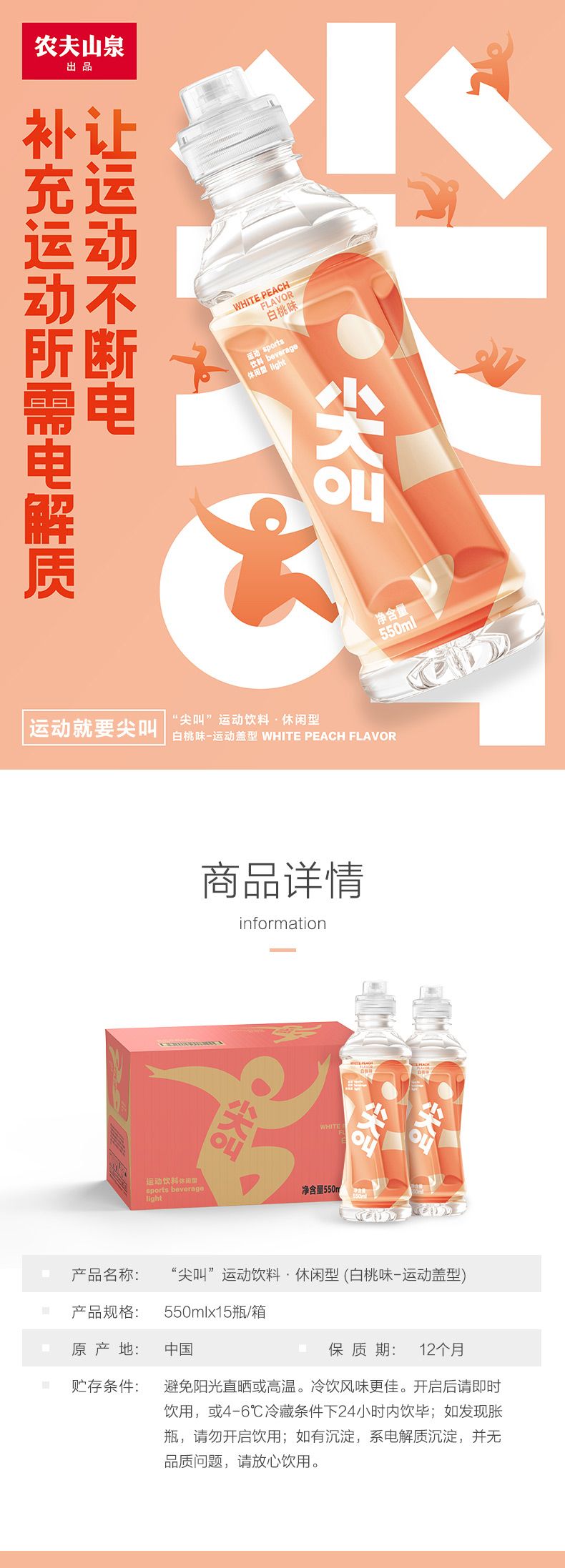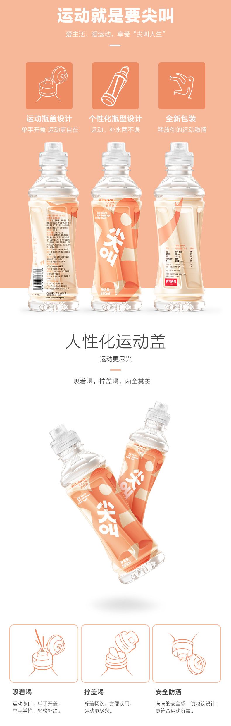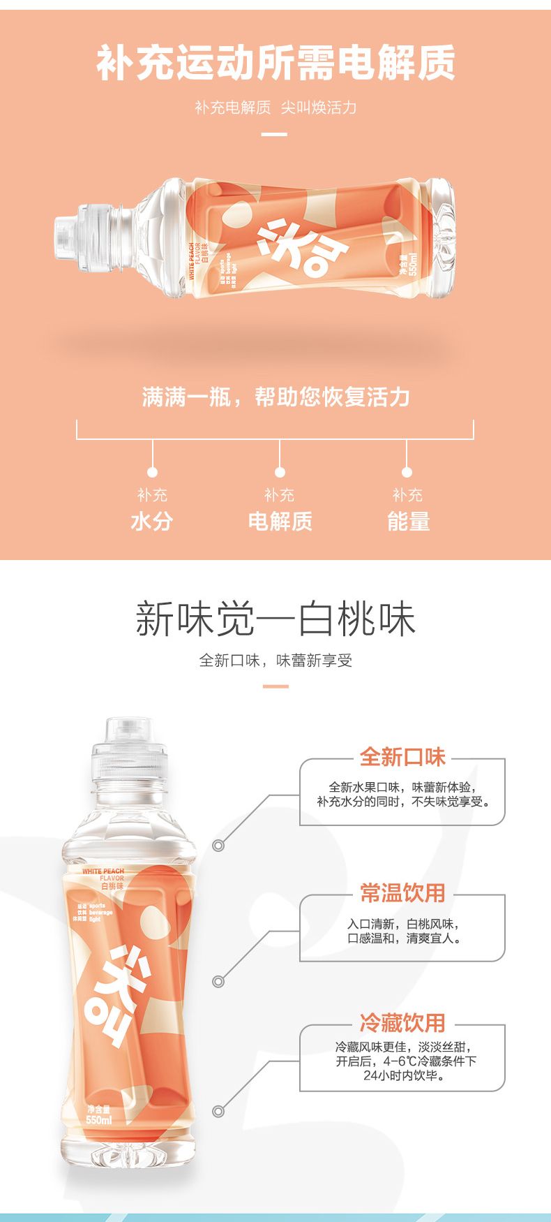 尖叫 运动饮料 白桃味 550ML